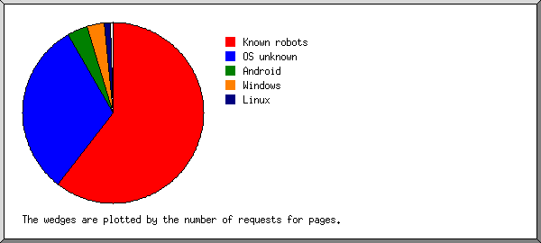 #: #reqs: #pages: OS --: -------: -------: -- 1: 2391152: 2257225: Known robots 2: 1750230: 1150877: OS unknown 3: 144641: 140081: Android : 138983: 135674: Android 6.0 (Marshmallow) : 3576: 2701: Android 10.0 : 771: 743: Android 9.0 (Pie) : 215: 173: Android 13.0 : 172: 171: Android 8.1 (Oreo) : 194: 161: Android 11.0 : 178: 110: Android 7.0 (Nougat) : 153: 80: Android 8.0 (Oreo) : 69: 66: Unknown Android : 101: 60: Android 12.0 : 81: 38: Android 5.0 (Lollipop) : 56: 23: Android 14.0 : 23: 23: Android 4.4 (KitKat) : 23: 23: Android 5.1 (Lollipop) : 17: 14: Android 7.1 (Nougat) : 4: 4: Android 4.3 (Jelly Bean) : 7: 3: Android 15.0 : 2: 2: Android 1.5 (Cupcake) : 2: 2: Android 3.0 (Honeycomb) : 2: 2: Android 4.0 (Ice Cream Sandwich) : 4: 2: Android 2.2 (Froyo) : 2: 2: Android 4.2 (Jelly Bean) : 1: 1: Android 2.0 (Eclair) : 2: 1: Android 2.1 (Eclair) : 1: 1: Android 1.6 (Doughnut) : 1: 1: Android 2.3 (Gingerbread) : 1: 0: Android 0.5 4: 116229: 106969: Windows : 89841: 82478: Windows 10 / Server 2016 / Server 2019 : 20737: 19367: Windows 7 / Server 2008 R2 : 1655: 1481: Windows 8.1 / Server 2012 R2 : 1454: 1315: Windows 8.0 / Server 2012 : 1207: 1098: Windows XP : 1006: 927: Windows Vista / Server 2008 : 133: 130: Unknown Windows : 66: 63: Windows Server 2003 : 31: 26: Windows 2000 : 20: 19: Windows 11 / Server 2022 : 22: 16: Windows NT 4.0 : 17: 15: Windows ME : 11: 10: Windows 95 : 12: 9: Windows CE : 11: 9: Windows 98 : 3: 3: Windows Phone 8.0 : 2: 2: Windows Phone 8.1 : 1: 1: Windows 3.1x / NT 3.51 5: 46292: 42611: Linux : 44670: 41213: Unknown : 1532: 1314: Ubuntu : 41: 40: Fedora : 16: 15: Gentoo : 13: 12: Debian : 11: 11: CentOS : 4: 4: Knoppix : 5: 2: Mint 6: 12196: 8875: Apple : 5294: 3068: macOS 10.15 (Catalina) : 2198: 1953: macOS 10.9 (Mavericks) : 1464: 1331: macOS 10.8 (Mountain Lion) : 1039: 922: macOS 10.7 (Lion) : 960: 832: macOS 10.6 (Snow Leopard) : 497: 244: macOS 12.0 : 158: 157: macOS Unknown : 150: 75: macOS 10.12 (Sierra) : 70: 70: macOS 13.0 : 59: 55: macOS 10.5 (Leopard) : 99: 35: macOS 10.10 (Yosemite) : 40: 34: macOS 10.14 (Mojave) : 27: 27: macOS 11.0 (Big Sur) : 26: 26: macOS 10.11 (El Capitan) : 15: 11: macOS 14.0 : 11: 9: macOS 10.3 (Panther) : 71: 9: macOS 10.13 (High Sierra) : 5: 5: macOS 10.2 (Jaguar) : 5: 4: macOS 10.4 (Tiger) : 4: 4: macOS 10.1 (Puma) : 2: 2: Macintosh : 2: 2: Mac OS X 10.0 (Cheetah) 7: 6106: 5763: iOS (Apple) : 2966: 2922: iPhone (iOS 13) : 2362: 2210: iPhone (iOS 17) : 272: 262: iPad Unknown : 161: 92: iPhone (iOS 18) : 73: 65: iPhone (iOS 15) : 65: 38: iPhone (iOS 11) : 29: 27: iPhone (iOS 8) : 22: 21: iPhone (iOS 9) : 32: 17: iPhone (iOS 16) : 17: 16: iPhone (iOS 10) : 15: 15: iPod (iOS 14) : 14: 13: iPhone (iOS 7) : 13: 12: iPod Unknown : 11: 10: iPhone (iOS 14) : 9: 9: iPad (iOS 14) : 10: 8: iPod (iOS 4) : 5: 4: iPhone (iOS 12) : 7: 4: iPod (OS 3) : 3: 3: iPad (iOS 10) : 2: 2: iPhone (OS 2) : 2: 2: iPad (iOS 6) : 2: 2: iPad (iOS 7) : 3: 2: iPhone Unknown : 2: 2: iPhone (iOS 4) : 1: 1: iPhone (OS 1) : 1: 1: iPad (iOS 8) : 1: 1: iPad (iOS 9) : 1: 1: iPhone (iOS 5) : 1: 1: iPad (iOS 11) : 3: 0: iPad (iOS 15) : 1: 0: iPad (iOS 13) 8: 61: 40: Chrome OS 9: 26: 24: Unix : 11: 11: FreeBSD : 6: 6: OpenBSD : 5: 4: NetBSD : 4: 3: SunOS 10: 10: 6: Symbian OS 11: 5: 5: OS/2